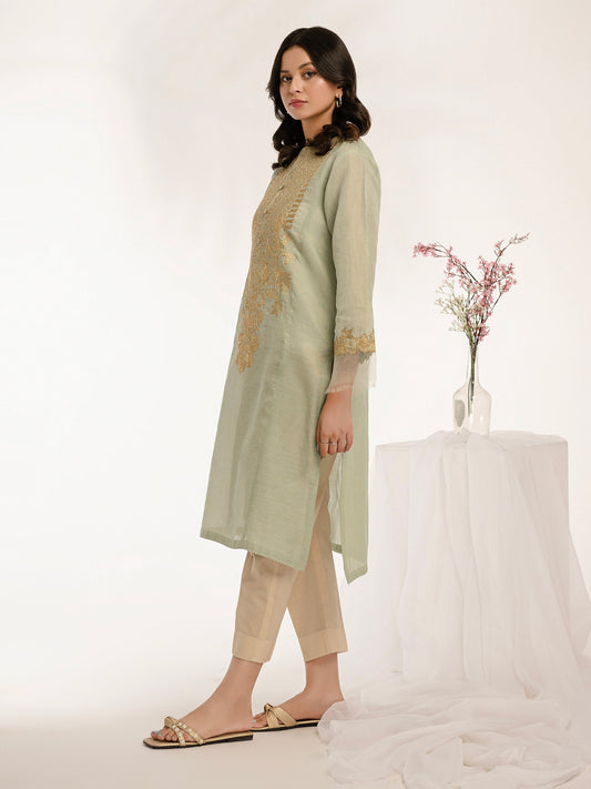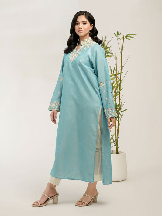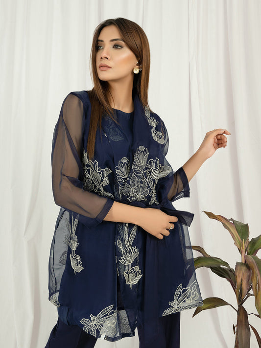 Organza Shirt With Cardigan-Embroidered (Pret)