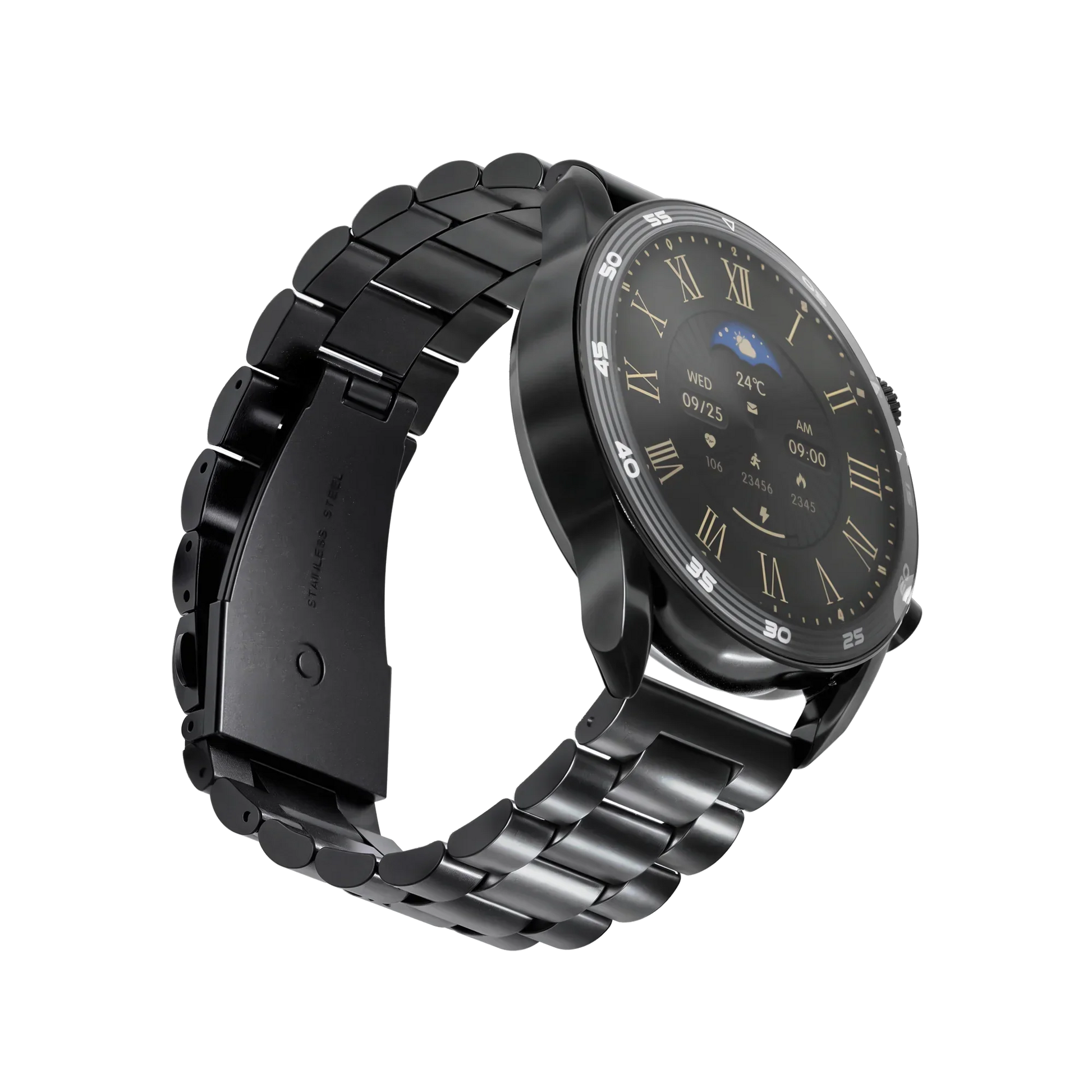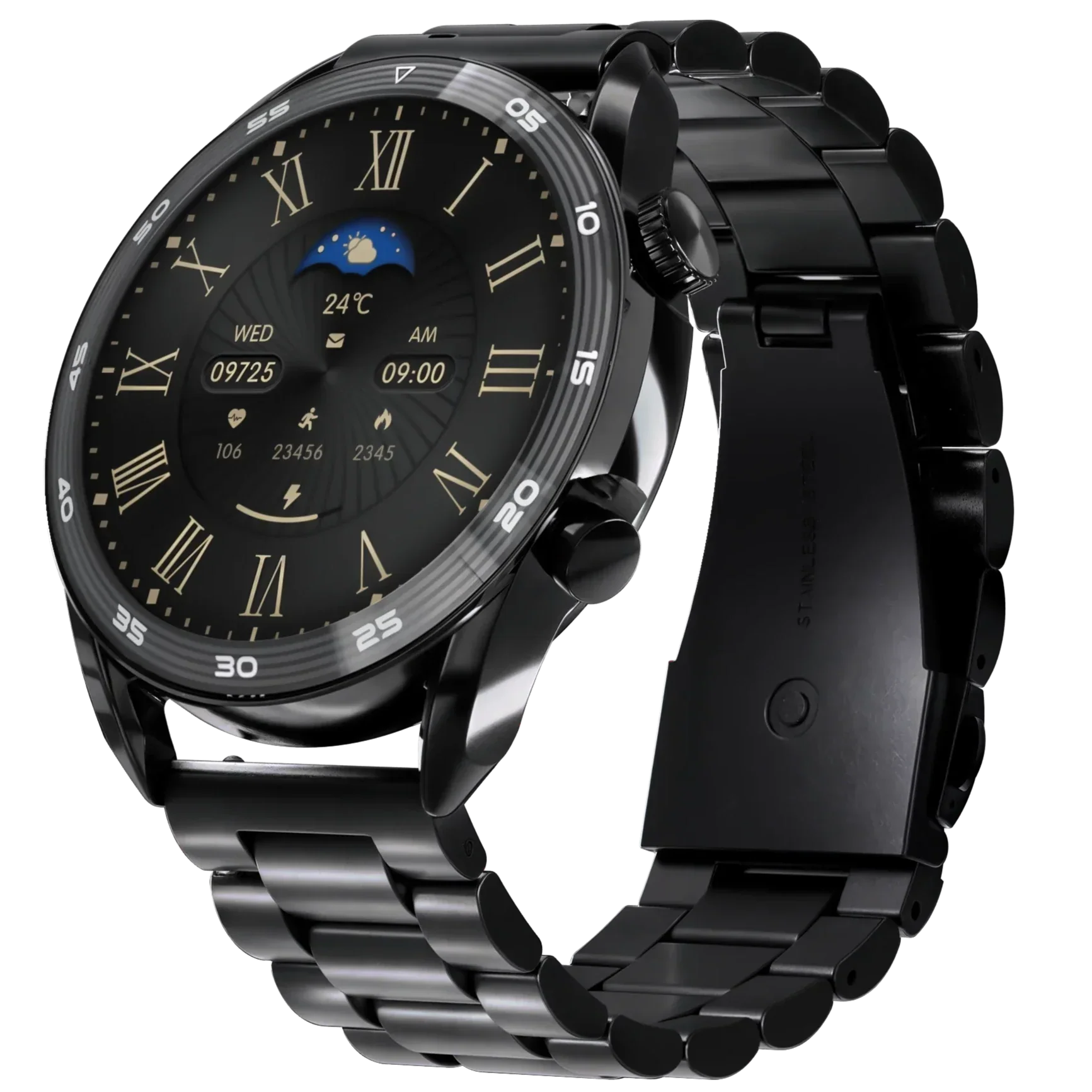 Experience technology that’s beyond luxury with the all-new Crown Smartwatch packed with features that are never before seen in the industry with a Vegan Leather Strap that is resistant to wrinkles, sweat and tears and powered with the industry’s first True Always On Ultra AMOLED Display resting on a chrome plated dial, making the Crown a benchmark of luxury with the latest technology, all on your wrist!