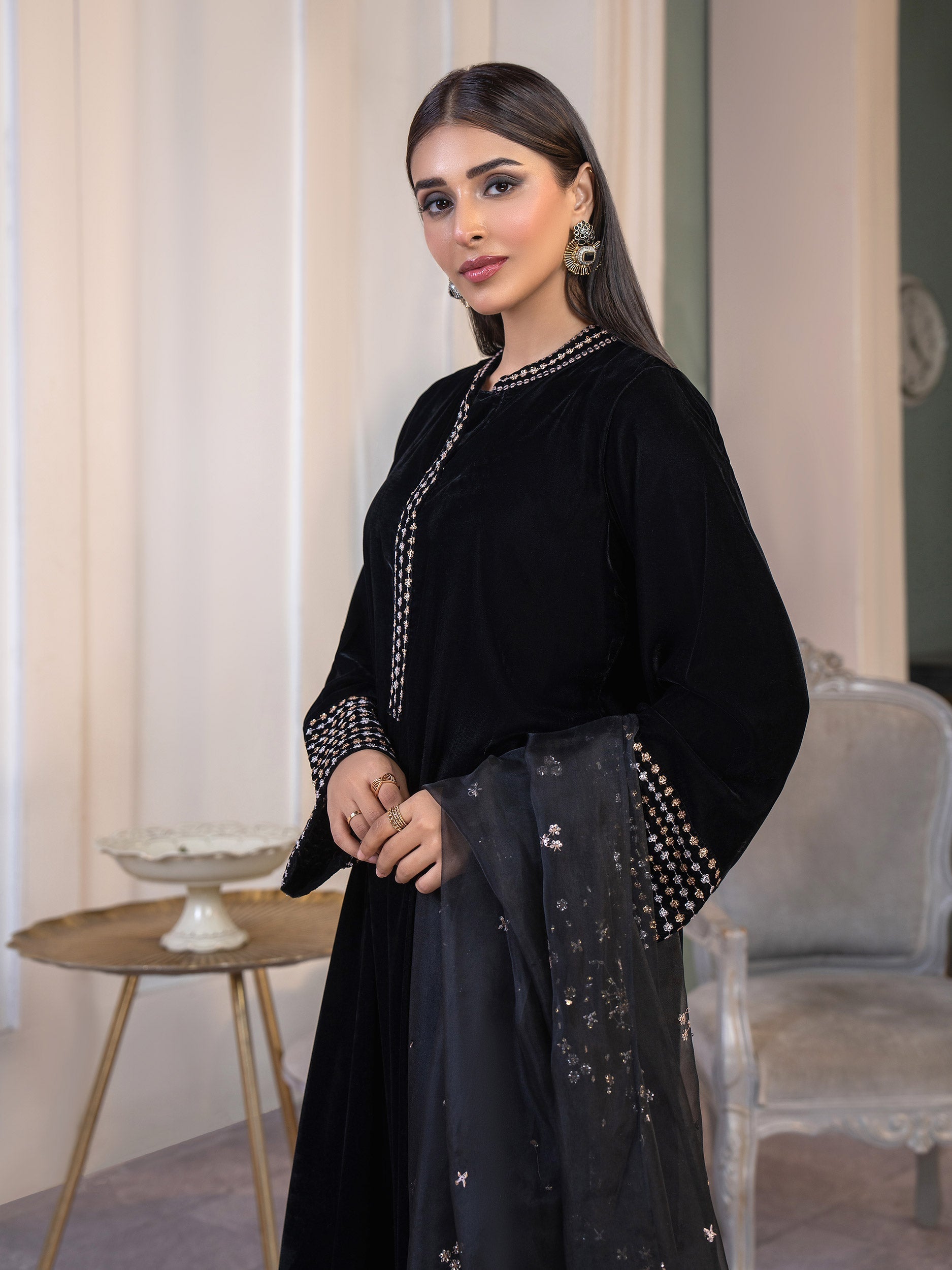 3 Piece Velvet Suit-Embroidered(Pret)