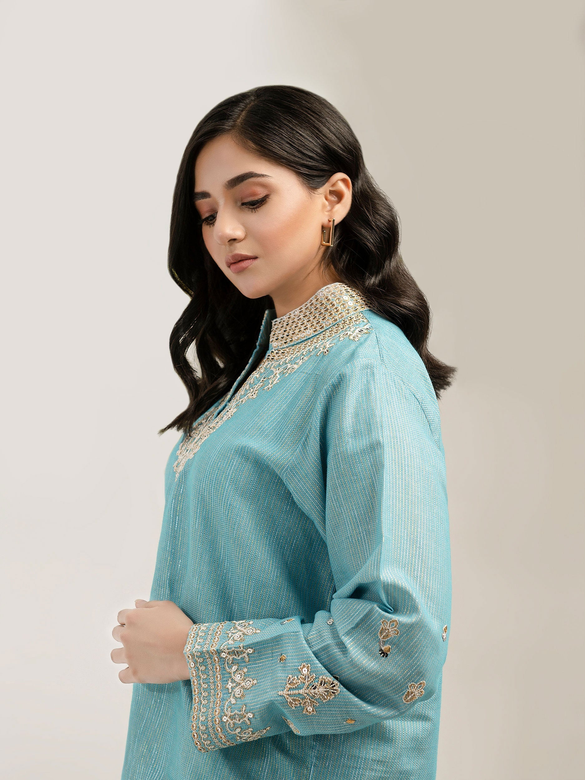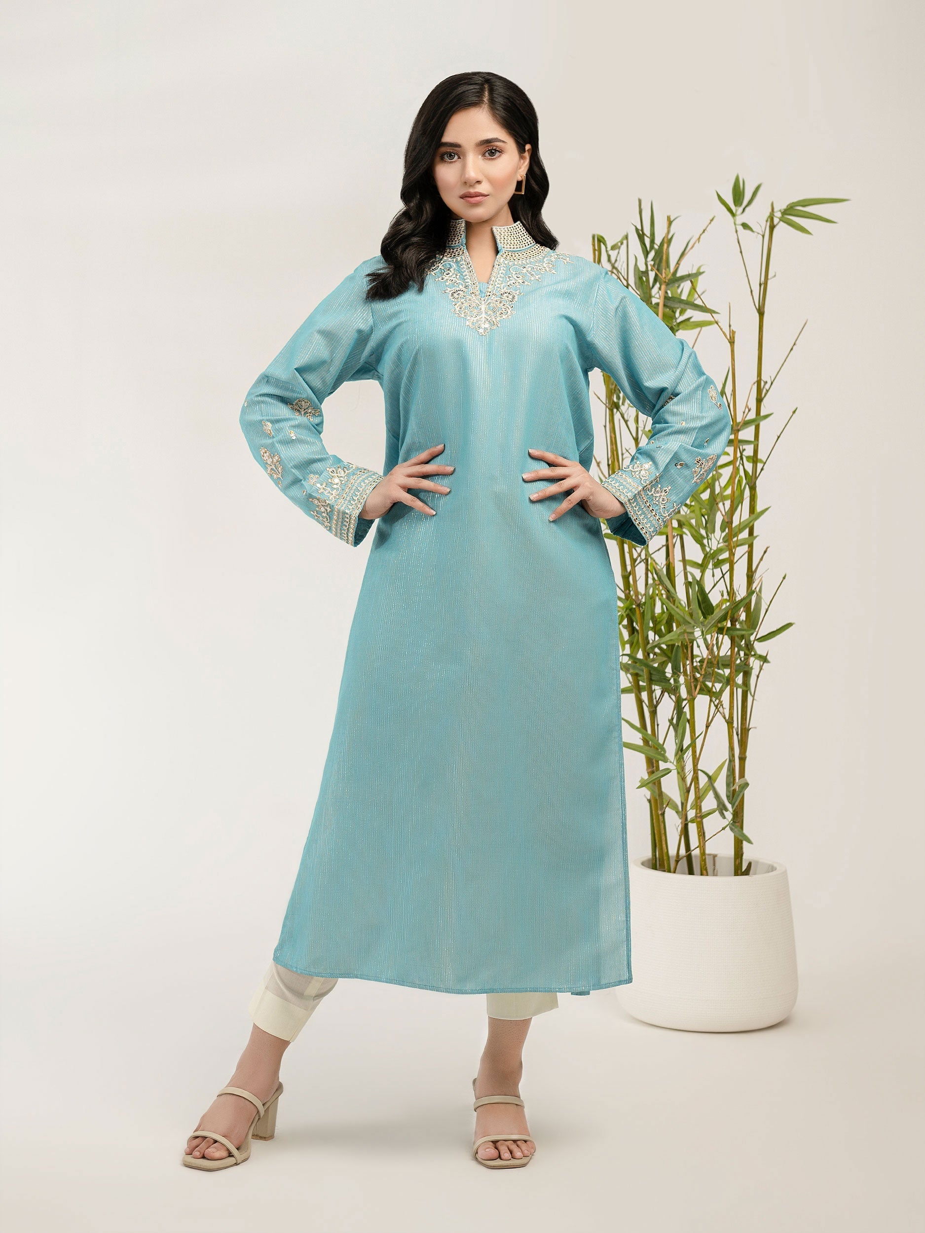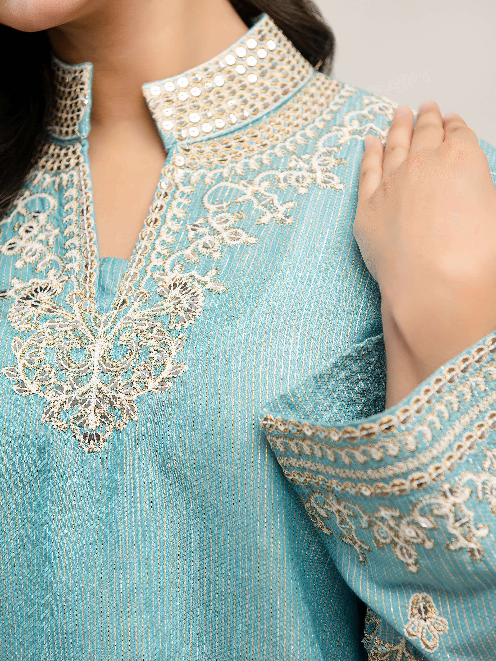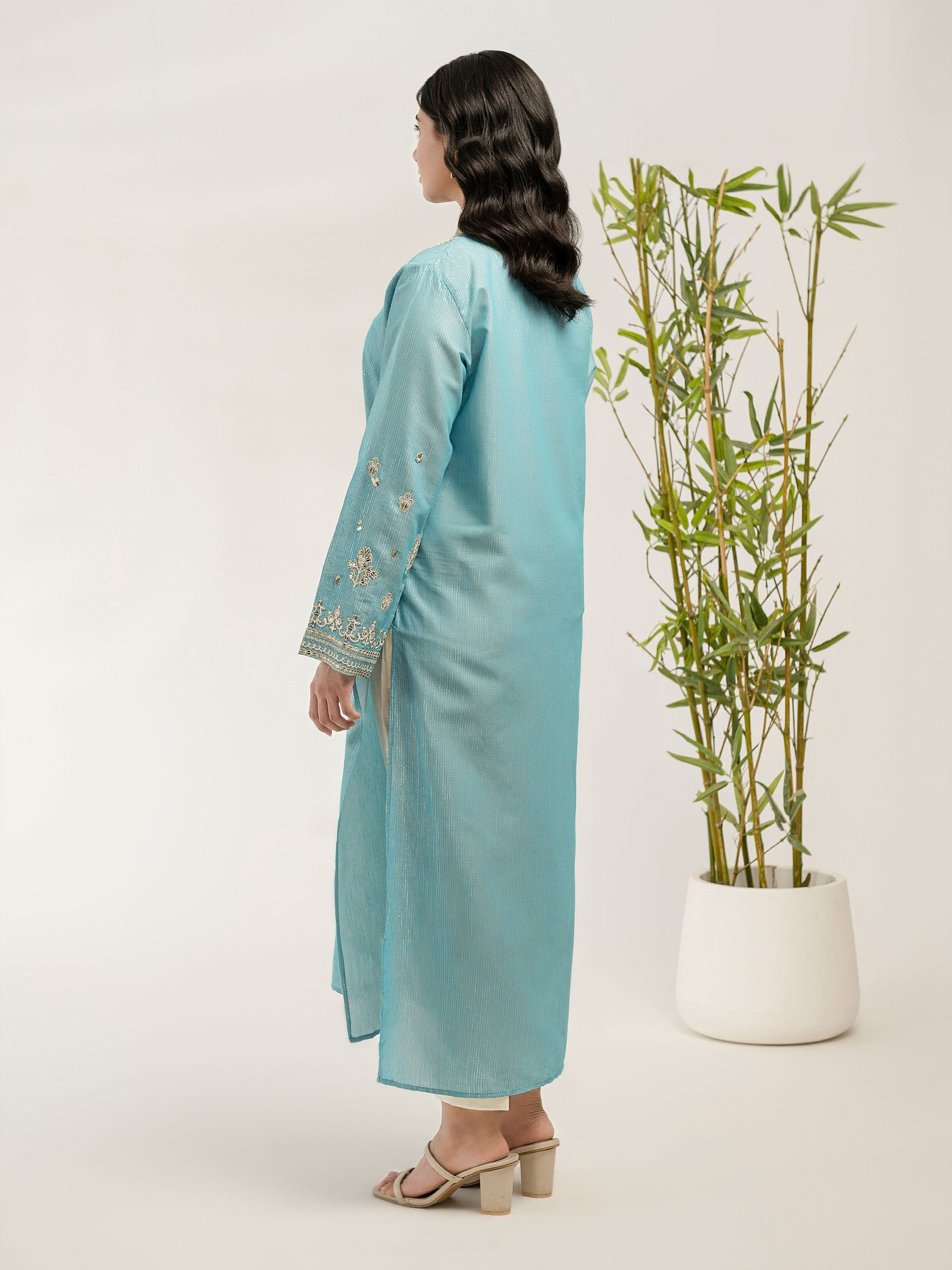 - Dyed long shirt with sequin, thread and tilla embroidery
